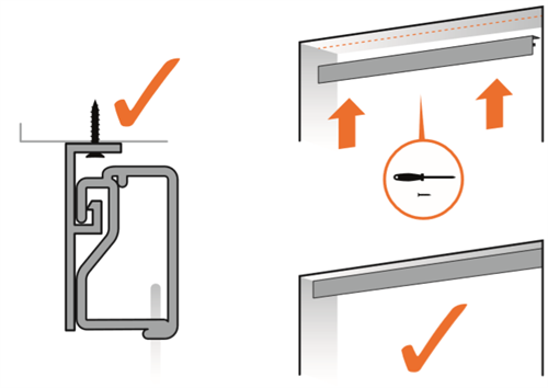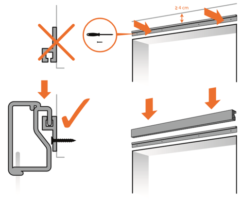 Bevestig het h-profiel met de inkeping naar boven. Het pootje van de 'h' wijst naar beneden. Zorg dat je 4cm ruimte hebt, die je nodig hebt voor totale montage van het h profiel met brede strip. Anders kun je het gordijn er niet goed inhangen.