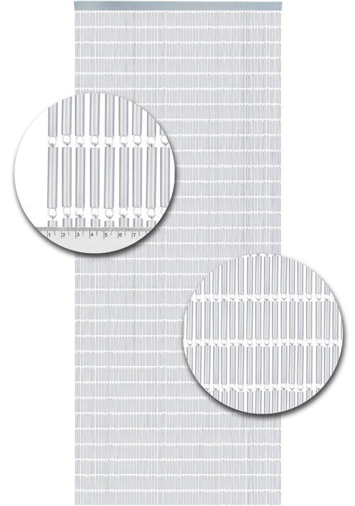 Naast dit rechte model kunt u ook kiezen voor een verspringend transparant vliegengordijn.